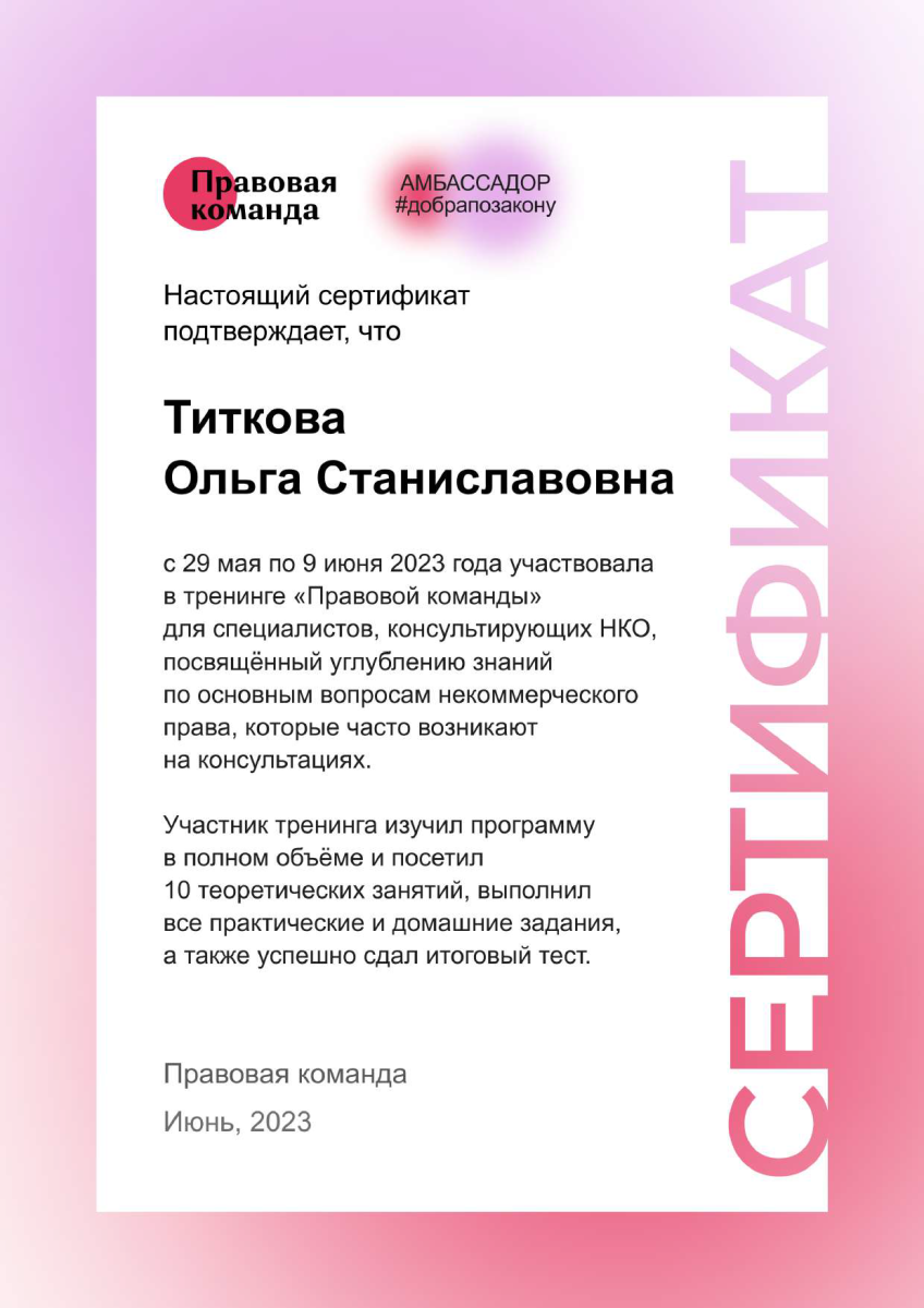 На этой странице мы собрали самые важные для нас сертификаты и дипломы, которые стали значимыми вехами нашей работы. Каждый из этих дипломов и сертификатов — это поддержанный проект или полученные ценные знания, а также — подтверждение нашего энтузиазма и уверенности в том, что вместе мы можем менять мир к лучшему.